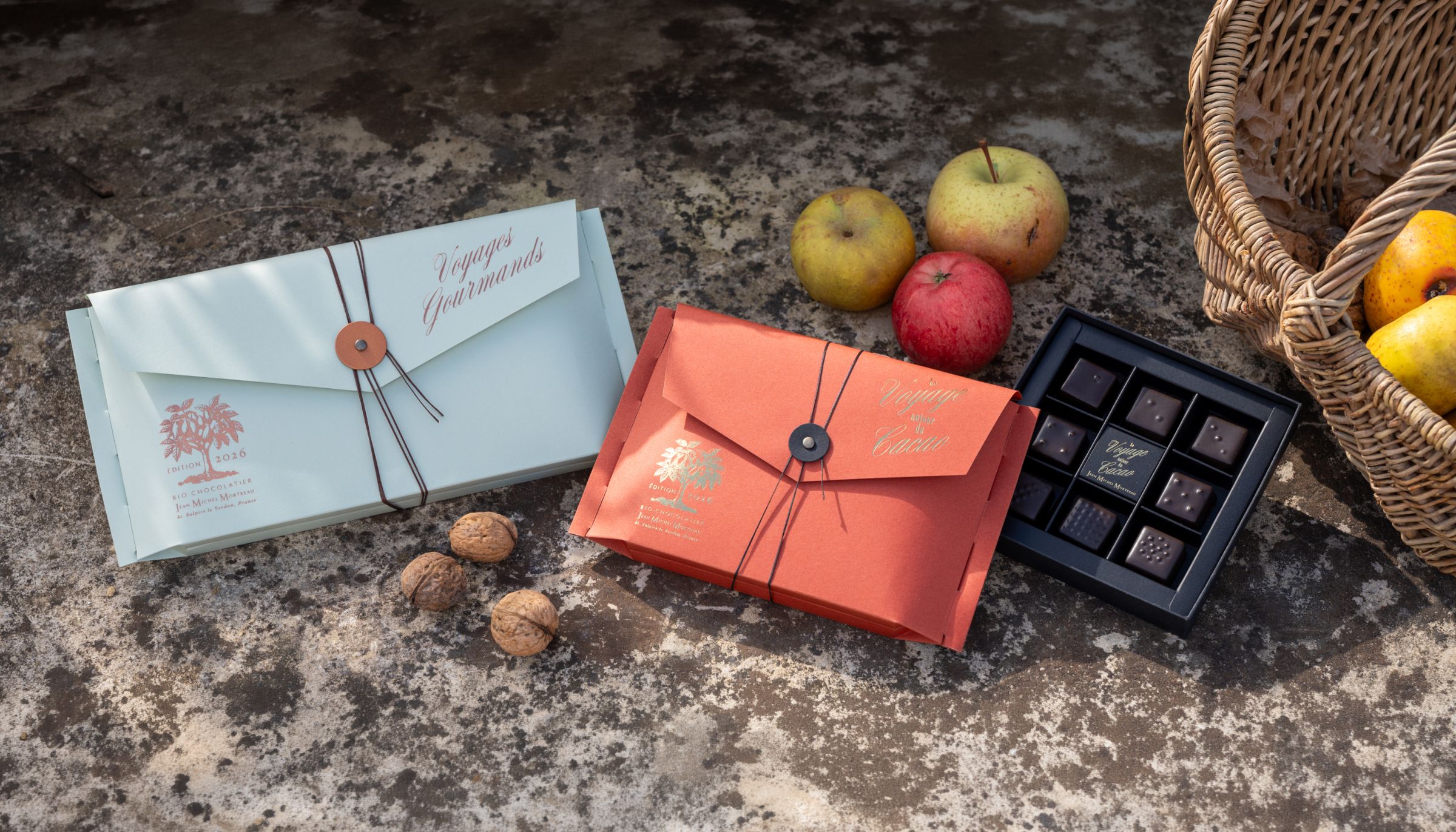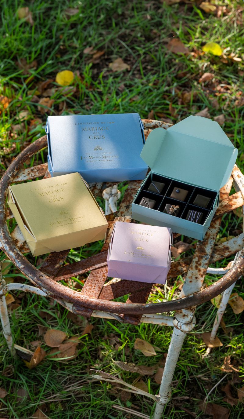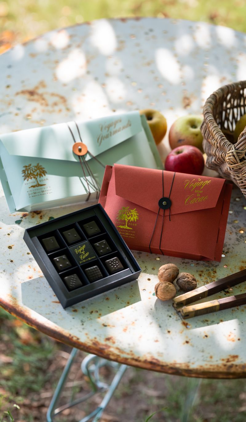産地ごとに異なるカカオの個性に、JMMが選ぶ、塩の花やビオの果実、ナッツを掛け合わせました。素材が響き合い、重なり合う瞬間の美しいハーモニー。その後に訪れる豊かな余韻。JMMのショコラ作りの原点が詰まった一箱です。